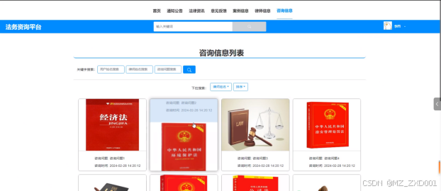 本系统采用Spring Boot+VUE框架进行开发Spring Boot是一种成熟、稳定的框架,被广泛应用于企业级应用的开发。它提供了一系列内置的功能和工具,能够大大简化Web应用的开发过程。Vue是一个轻量级的现代前端框架,用于构建用户界面,Vue的组件化开发模式使得代码更加模块化,易于维护。研究该系统旨在为用户提供更加智能、高效的法律信息服务。