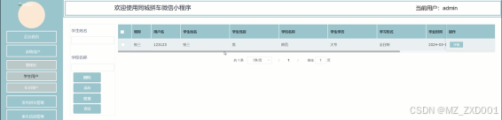 (2)系统用户:当管理员点击“系统用户”时,可管理管理员、学生用户和车主用户,同时可对系统用户进行增删改查。