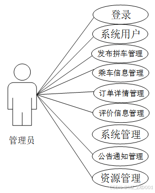 同城拼车微信小程序中管理员用例图如图2.2所示: