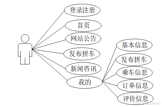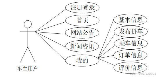 同城拼车微信小程序中车主用户用例图如图2.2所示: