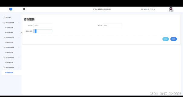 - 系统用户管理:添加、编辑和删除系统用户角色,包括管理员、学生用户和心理专家用户。