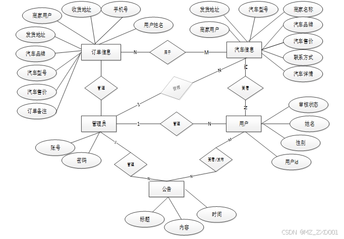 下面是整个基于协同过滤的家庭汽车推荐系统中主要的数据库表总E-R实体关系图。