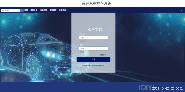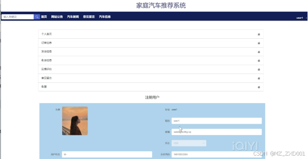 - 用户注册登录:用户注册为用户并登录基于协同过滤的家庭汽车推荐系统;用户对反馈评价的增删改查,比如个人资料,密码修改。