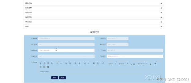 (6)反馈评价管理:点击“反馈评价管理”这个菜单,可以查看到所以用户提交的反馈评价详情,进行查询,添加、删除等操作。