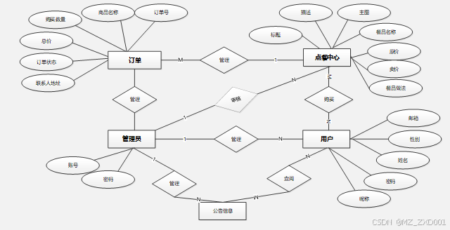 (1) 订餐系统整体E-R图,如图4-4所示: