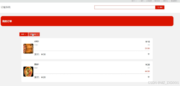 我的订单:用户可以查看订单的状态和历史记录,包括订单号、购买商品、交易总额等。界面如下图所示。