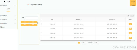 公共管理:管理员可以查看和处理轮播图、公告信息等信息,并进行增删改查的操作。界面如下图所示。