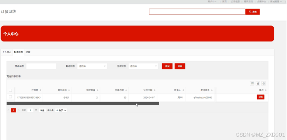 订单配送:管理员查看订单配送的详细信息,包括订单编号、商品名称、购买数量、交易总额、发货日期等。界面如下图所示。