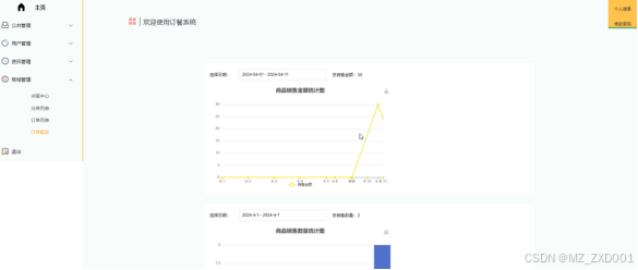 This article proposes the design and implementation of a meal ordering system based on the SSM framework. The system is developed using the SpringMVC+Spring+MyBatis (SSM) framework through front-end and back-end separation, achieving functions such as user registration, login, ordering, shopping cart, and order management. The system has designed a user registration module, where users can enter information such as account, password, nickname, email, etc. to register and store user information in a database. After successful registration, users can log in using their account and password. The system has designed user function modules, including homepage, announcement information, catering information, ordering center, mall management, my account, and personal center. The system also designed administrator function modules, including homepage, public management, user management, information management, mall management, and personal information. Administrators can view the sales amount and sales quantity statistics of products on the homepage. The system uses charts to display statistical data, allowing administrators to intuitively understand the sales situation of products. Through statistical charts, administrators can timely understand the sales situation and make corresponding decisions based on data analysis.