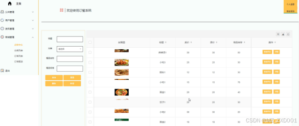 商城管理:管理员在此页面对点餐中心、分类列表、订单列表、订单配送进行管理。点餐中心,在此页面对商品的发布、编辑和删除,包括标题、图片、描述、原价、库存、分类、卖价等信息。管理商品的分类信息,方便用户浏览和筛选商品。界面如下图所示。