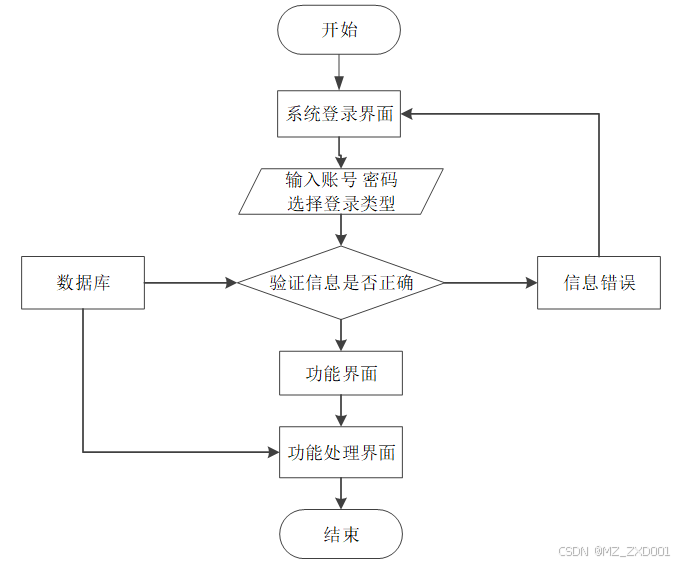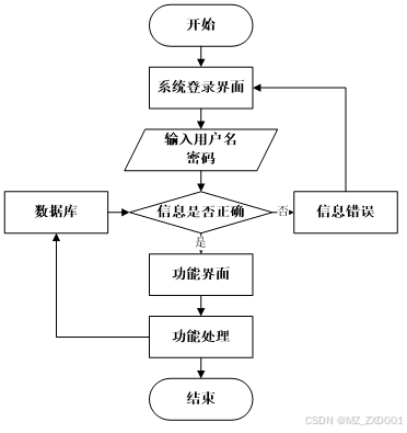 用户打开客户端并进入系统后,会先显示登录界面,输入正确的用户名和密码,系统自动检测信息,若信息无误,则用户会进入系统功能界面,进行操作,否则会提示错误无法登录,操作流程如图3-3所示。