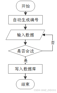 添加信息,编号系统使用自动编号模式,没有用户填写,用户添加信息输入信息,系统将自动确认的信息和数据,验证的成功是有效的信息添加到数据库,信息无效,重新输入信息。添加信息流程如图3-3所示。