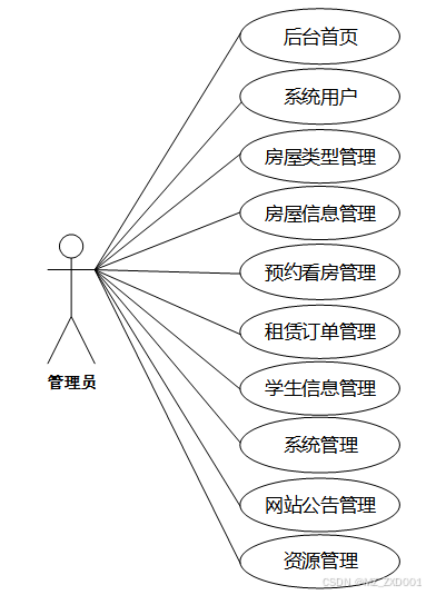 图2-9基于Spring Boot框架的大学生租房系统管理员角色用例图