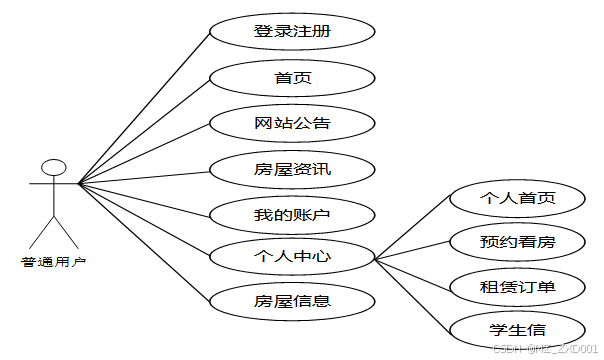 以上功能需求分析涵盖了普通用户、房东用户和管理员三个角色在大学生租房系统中的主要功能,以实现对房屋信息、订单管理和用户交流的全面管理和监控。