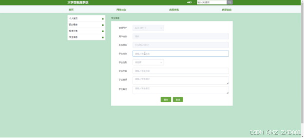 普通用户在个人中心页面点击“学生信息”,可以录入自己的学生信息。界面如下图所示。