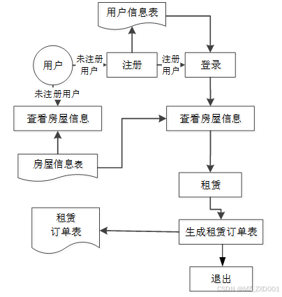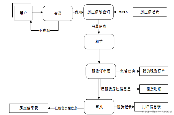 基于Spring Boot框架的大学生租房系统主要的目的之一就是实现用户线上租赁房屋,图2-1就是系统的数据流图。