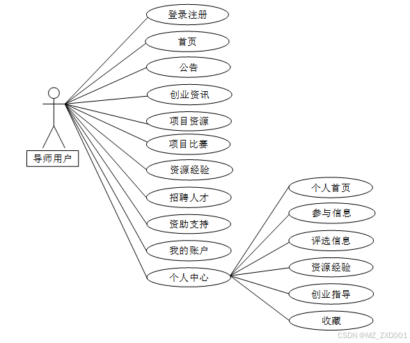 首页:展示网站的核心内容,包括最新创业资讯、热门项目资源、比赛信息等,以引导导师用户快速了解网站动态。