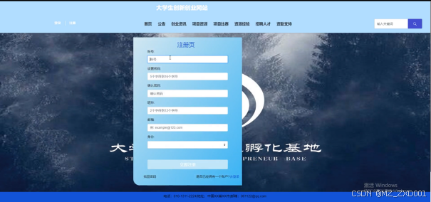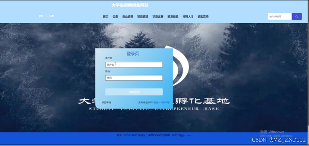 首页:展示网站的核心内容,包括最新创业资讯、热门项目资源、比赛信息等,以引导学生用户快速了解网站动态。