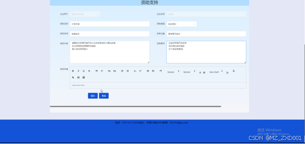 当企业用户点击个人中心“资助支持”按钮可以发布自己企业可提供的创业资助和支持。界面如下图所示。