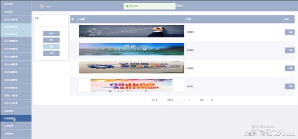 管理员点击“系统管理”这一菜单会显示轮播图这一个子菜单,管理员可以对前台展示的轮播图进行设置,界面如下图所示。