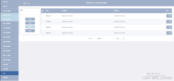 管理员点击“公告管理”这一菜单,可以对公告信息进行增删改查等操作,界面如下图所示。