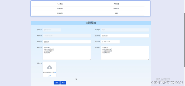 当导师用户点击个人中心“资源经验”按钮,可以发布导师的创业经验和资源。界面如下图所示。