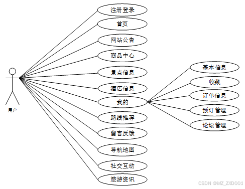 系功能模块分成了管理员及注册用户两个模块,每个模块登录进去对应相应的功能,具体的功能模块图如图3.1所示。