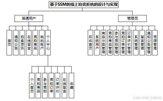 线上拍卖系统的功能主要包括普通用户和管理员两个角色,具体功能分析如下: