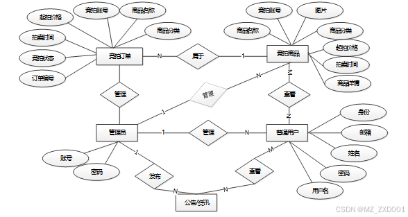 下面是整个线上拍卖系统中主要的数据库表以及总E-R实体关系图。