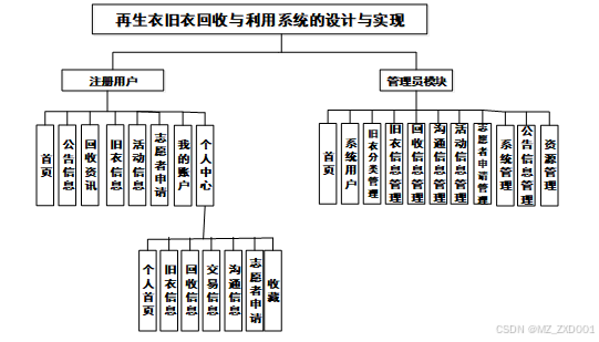 再生衣旧衣回收与利用系统划分了注册用户和管理员这两大部分。