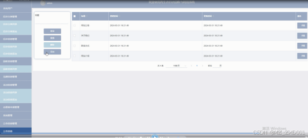 系统管理:管理员可以管理系统的相关设置,包括网站首页的轮播图设置、通知公告管理等,以提升网站的用户体验和管理效率。