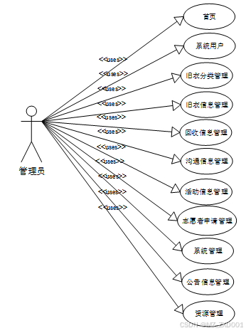 图2-2再生衣旧衣回收与利用系统管理员角色用例图