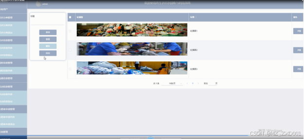 管理员点击“系统管理”这一菜单会显示轮播图这个子菜单,管理员可以对前台展示的轮播图进行设置,界面如下图所示。