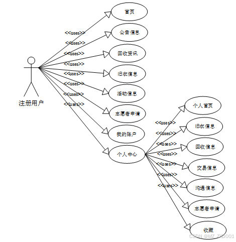 图2-2 再生衣旧衣回收与利用系统注册用户角色用例图