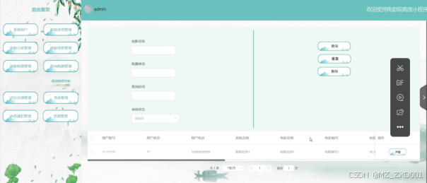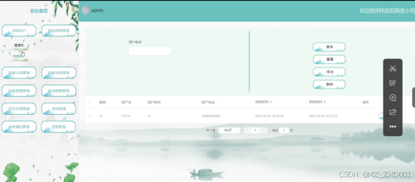 - 电影购票管理:管理员可以查看、删除、重置电影购票列表。