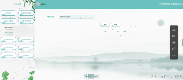 - 电影分类管理:管理员可以查看、删除、重置电影分类列表,也可以添加电影分类。