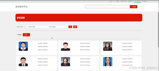 学生信息:用户点击可通过搜索学生姓名和学生专业进行查看学生信息,同时可对学生信息进行点赞和收藏。界面图如下。