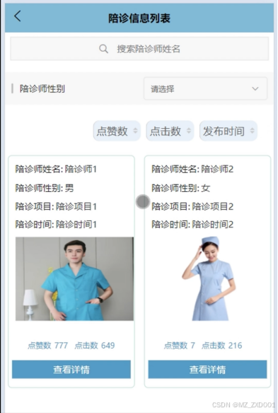 - 陪诊信息管理:管理员可以查看陪诊信息列表详情,可以对陪诊信息进行增删改查等操作。