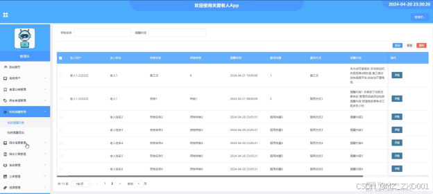 - 吃药提醒管理:管理员可以查看吃药提醒列表详情,可以对吃药提醒进行增删改查等操作