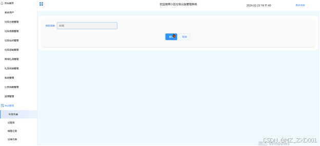 (4)垃圾分类:管理员点击可查看垃圾分类列表,同时可对垃圾分类进行增删改查。
