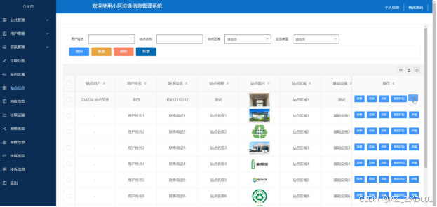- 站点信息:站点用户点击站点信息,可对站点信息进行增删改查。