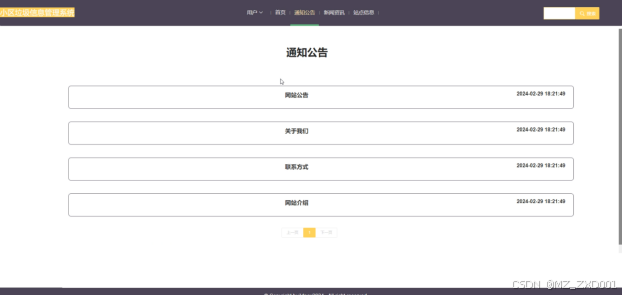 (3)通知公告:用户点击可查看网站公告、关于我们、联系方式和网站介绍