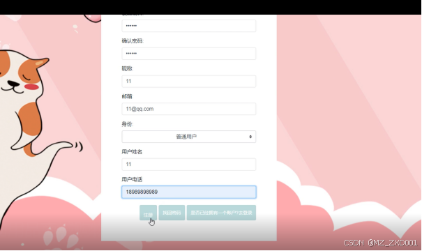 | 用户名 | 密码 | 确认密码 | 邮箱 | |