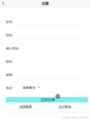 不是基于微信小程序的健身小程序的用户可以通过微信小程序在线进行注册,填写上自己的账号、密码、重复密码、昵称、邮箱等信息后点击“提交”按钮后将会验证是否有非空数据,再验证密码和重复密码是否一样,最后验证是否账号重复,都验证没问题后即可注册成功。注册实现了用户注册和发布者注册两部分,其用户注册界面展示如下图4-1所示。