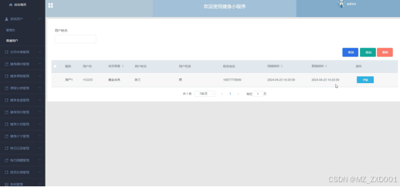 健身打卡管理:管理员可以对健身打卡的信息,进行添加、查询、删除等操作。