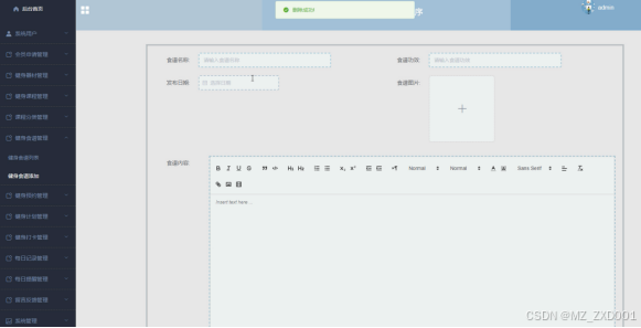 健身食谱管理:管理员可以对健身食谱的信息,进行添加、查询、删除等操作。