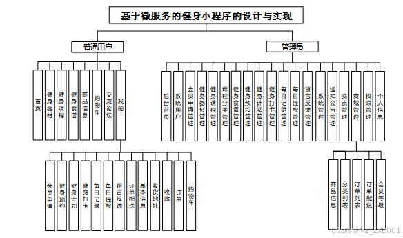 基于微信小程序的健身小程序的完整UML用例图分别是图2-1和图2-2。在参与者上包括普通用户和管理员。