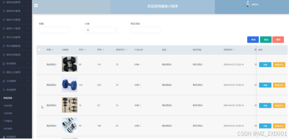 商品信息:用户可以浏览健身相关商品并加入购物车,进行购买。