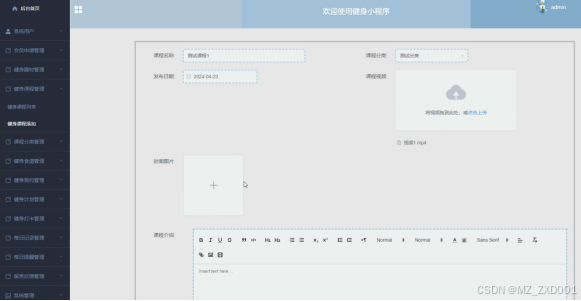 健身课程管理:管理员可以管理健身课程的信息,包括添加、查询、删除等操作。