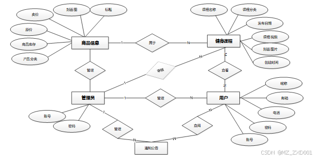 下面是整个基于微信小程序的健身小程序的数据库表的E-R实体关系图,如图3-2所示: